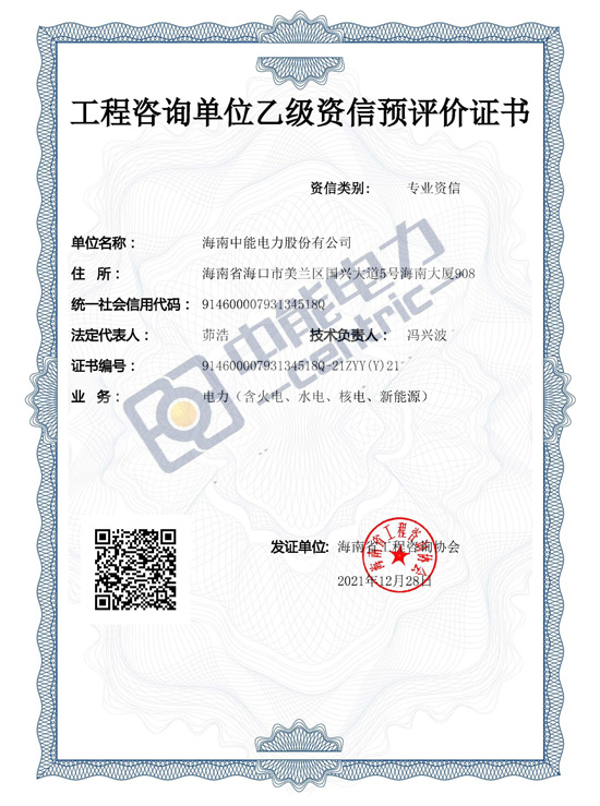 工程咨詢(xún)單位乙級(jí)資信預(yù)評(píng)價(jià)證書(shū)